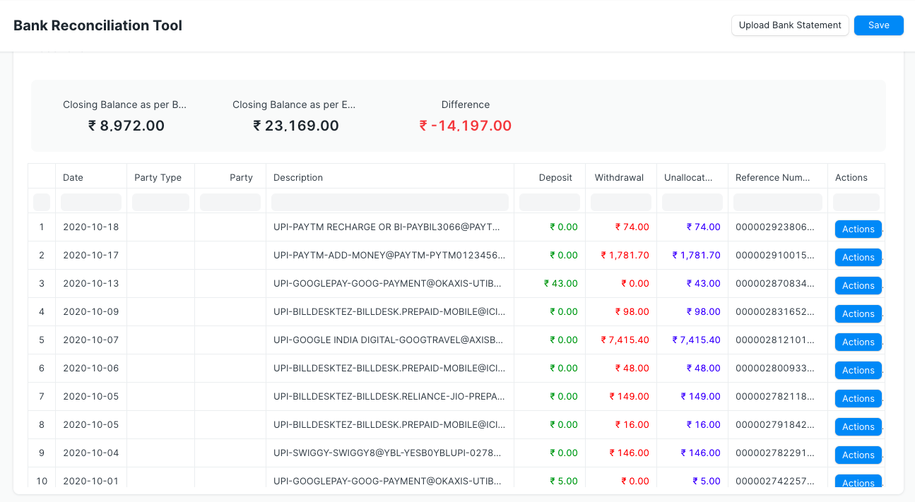 Gain a clear and accurate view of receivable and payable by efficiently matching unreconciled payments with outstanding invoices using an intuitive Payment Reconciliation Tool. Simply import your bank statement and match transactions seamlessly using reference numbers.